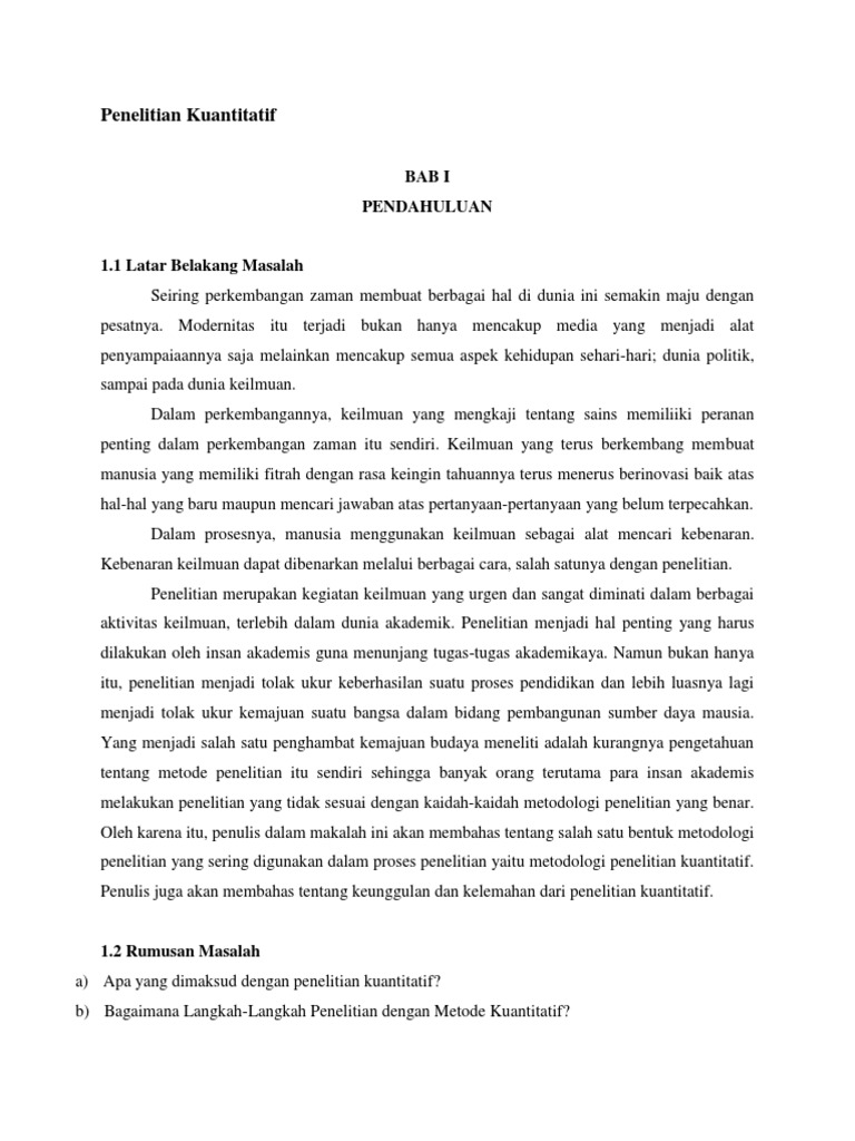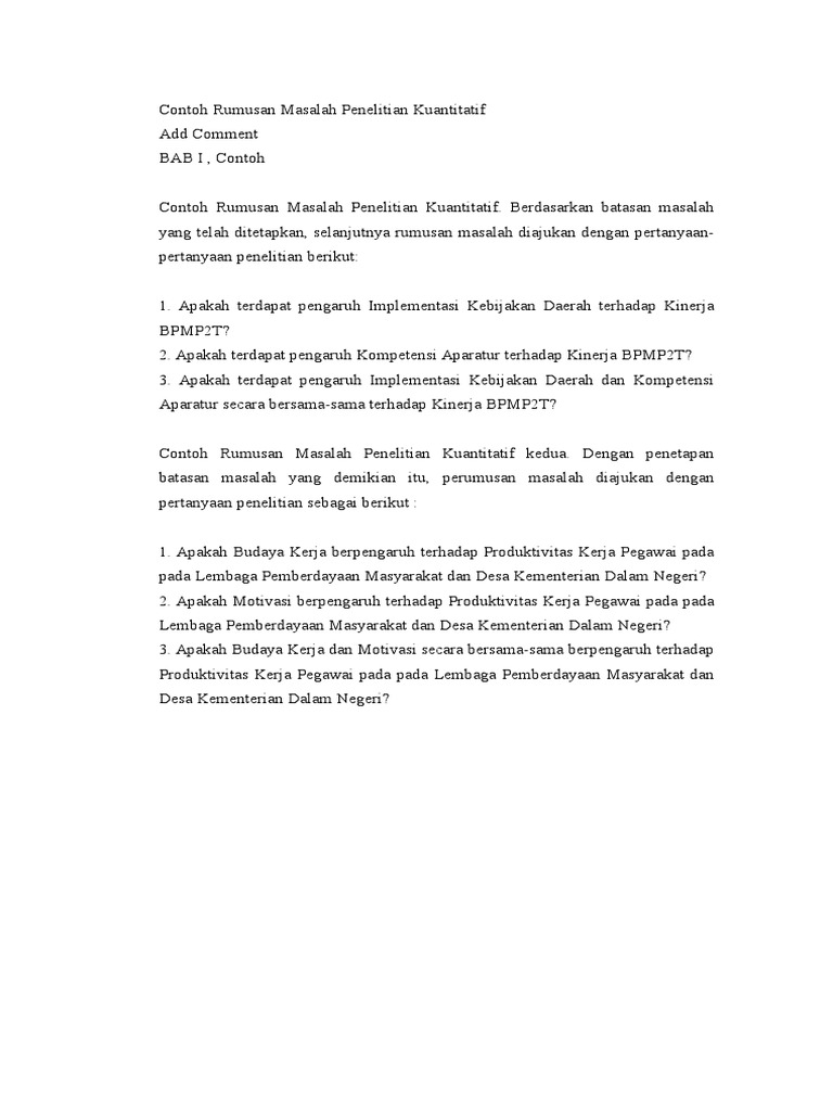 Contoh Rumusan Masalah Penelitian Kuantitatif Pdf